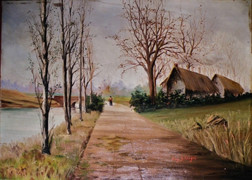Very well known for painting flowers, travelling in Europe, he painted also landscapes in France.