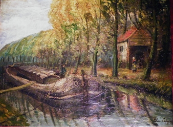Exceptional dimensions for this painting, lots of his Barbizon paintings were rather small. This view has been painted during autumn . It's the same mill painted in summer by Jakob MICHIELS . ( Gallery 1). Notice that here too, a human figure is on the little bridge, but it's not a painter like in Michiels's painting. Galien-Laloue is worldwide known for his watercolors and paintings of Paris Belle Epoque, but also for his landscapes in Barbizon. He decided to use several pseudonyms, probably due to the exclusive contracts with art sellers. L. DUPUY, JULIANY, GALIANY, LIEVIN, KERMANGUY, DUMOUTIER, MICHEL, and others too, are the most frequent pseudos he was signing with. We show here several landscapes of GALIEN-LALOUE, a master in this domain .