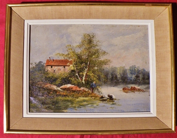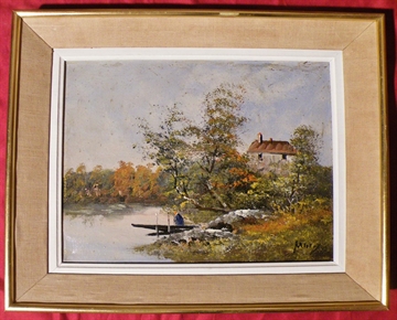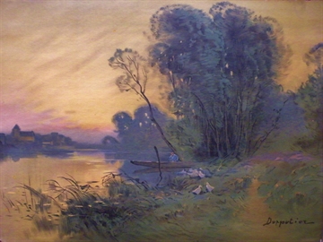 The typical perspective in a river landscape by Galien-Laloue. It's the pure style of this artist, with always human figures.Galien-Laloue is worldwide known for his watercolors and paintings of Paris Belle Epoque, but also for his landscapes in Barbizon. He decided to use several pseudonyms, probably due to the exclusive contracts with art sellers. L. DUPUY, JULIANY, GALIANY, LIEVIN, KERMANGUY, DUMOUTIER, MICHEL, and others too, are the most frequent pseudos he was signing with. We show here several landscapes of GALIEN-LALOUE, a master in this domain .